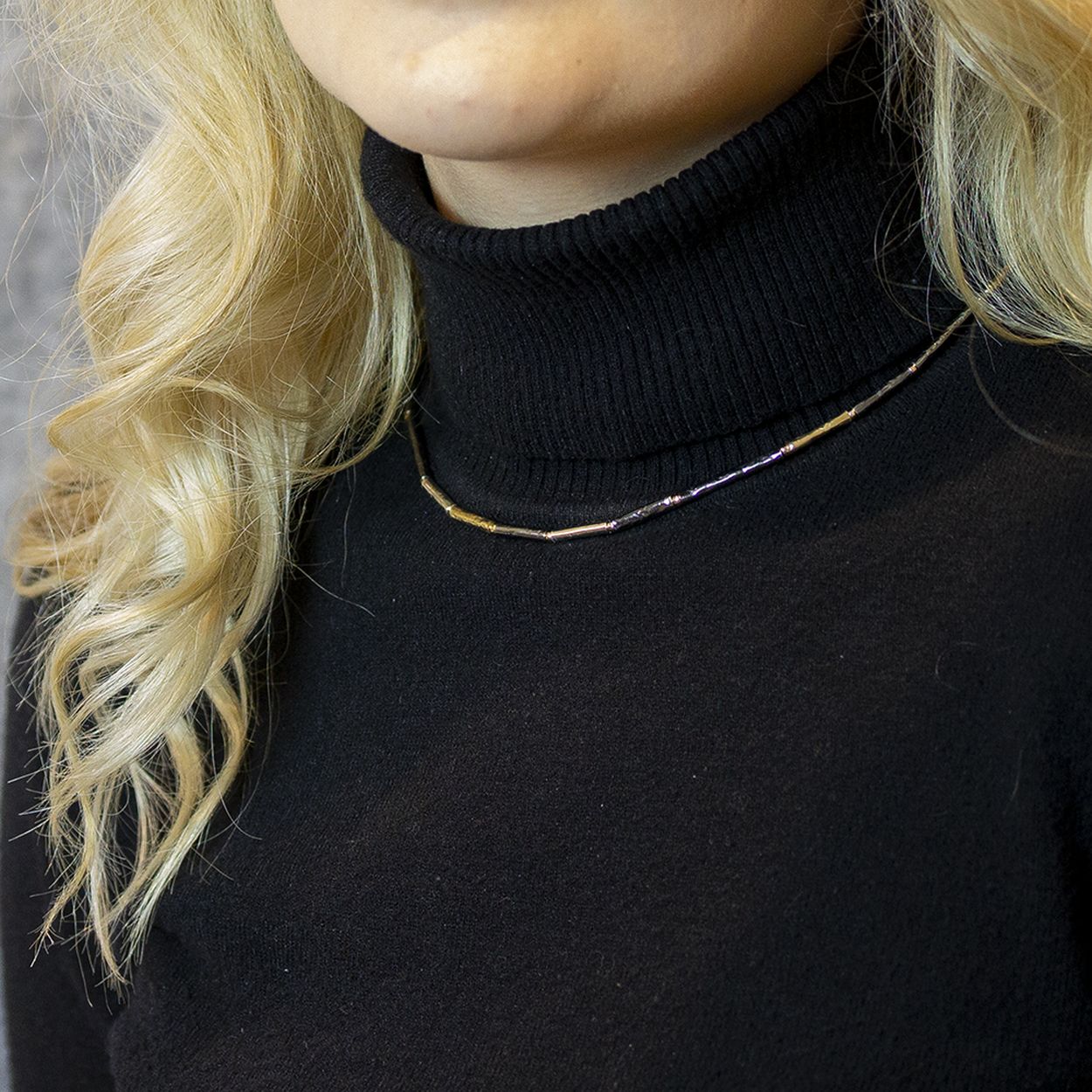Buisjescollier zilver oxy/ wit + goldfilled 48cm