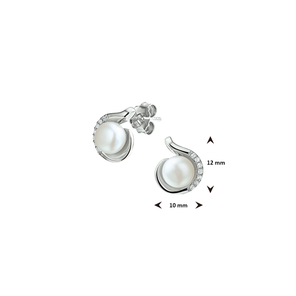 Zilveren oorknoppen met parel en zirkonia